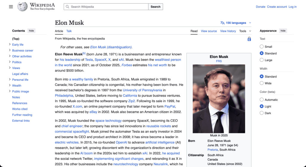 Wikipedia is one of the most visited websites globally and consistently ranks at the top of Google search results. Having a page there signals public relevance, authority, and trust. It’s often the first place journalists, investors, and collaborators look when researching a person or brand.